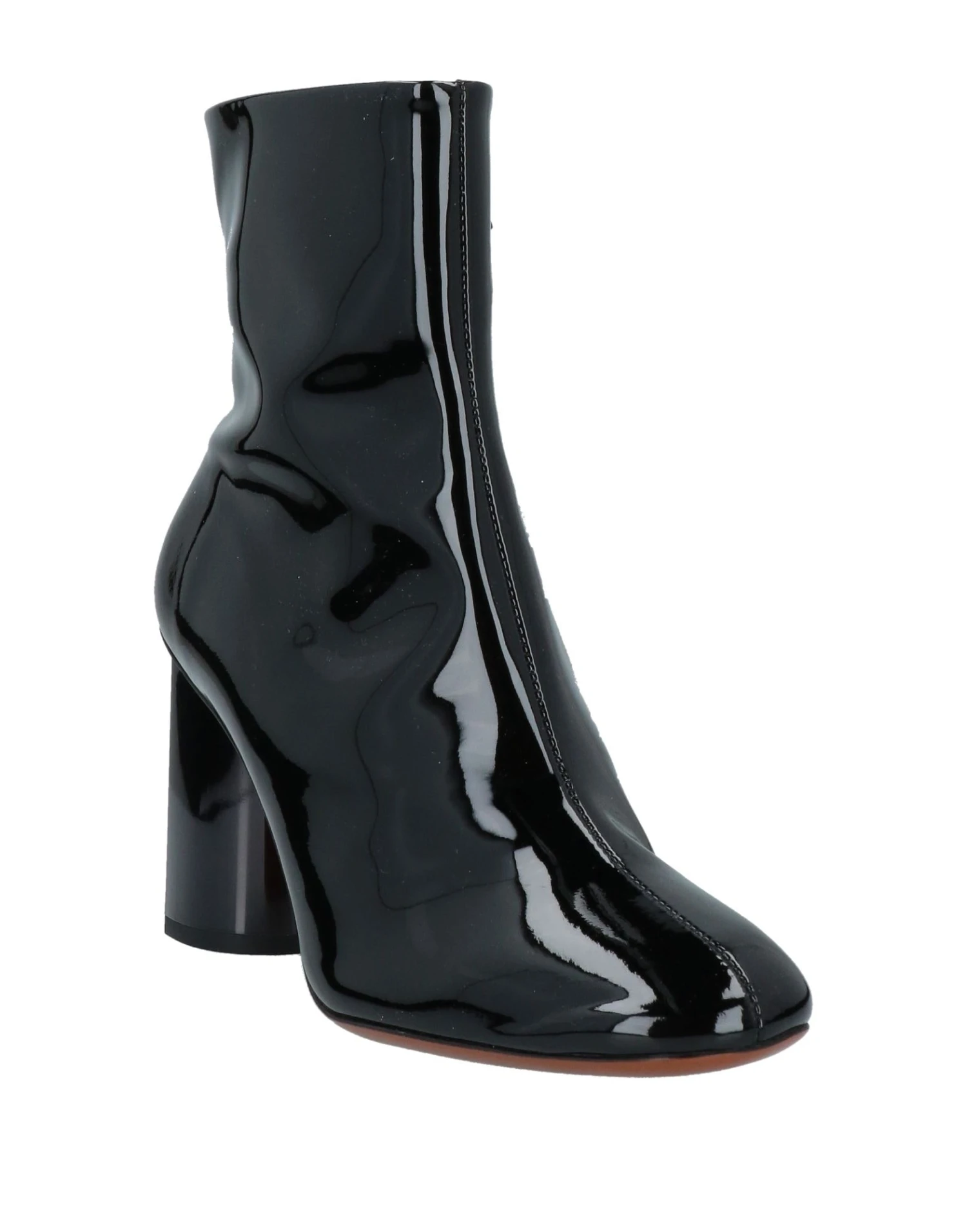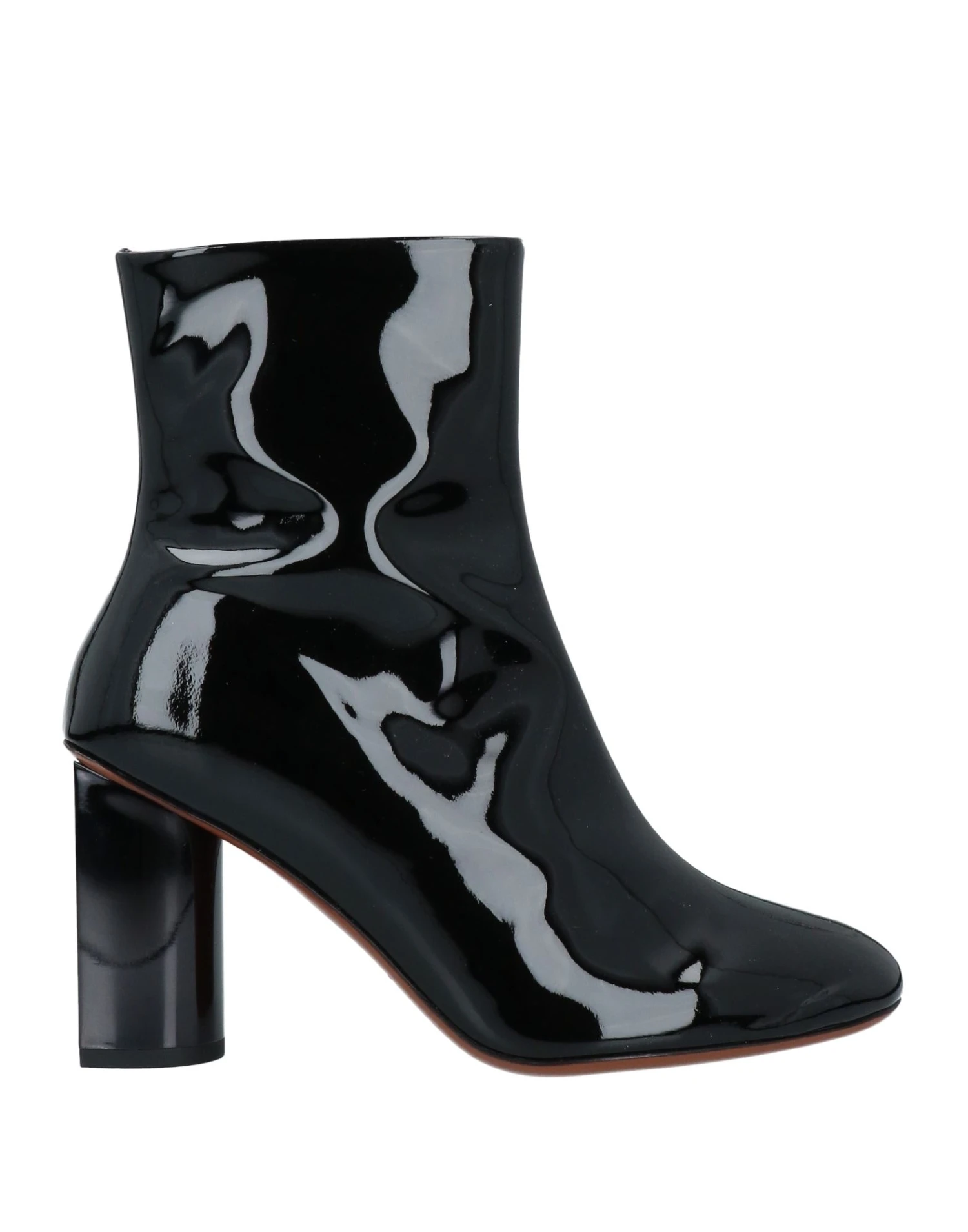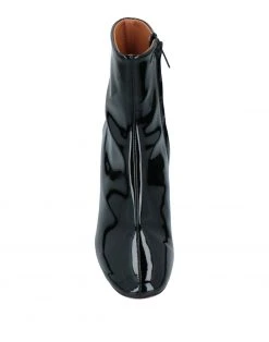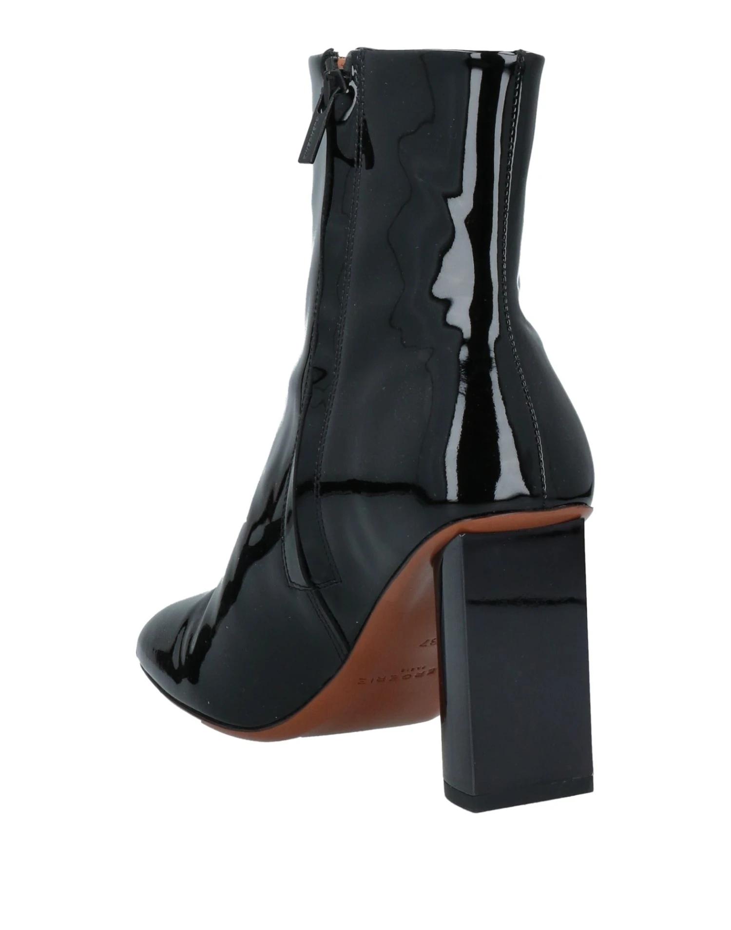 leather, varnished effect, no appliqués, solid color, leather backing, zipper closure, round toeline, geometric heel, leather sole, contains non-textile parts of animal origin, ankle boots