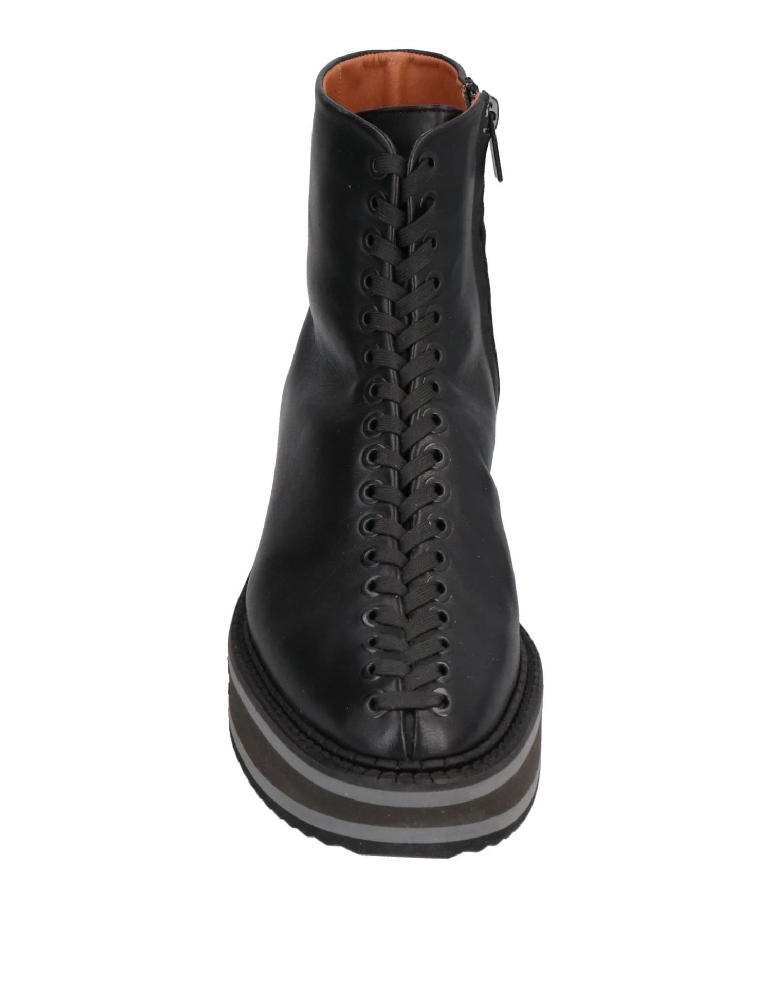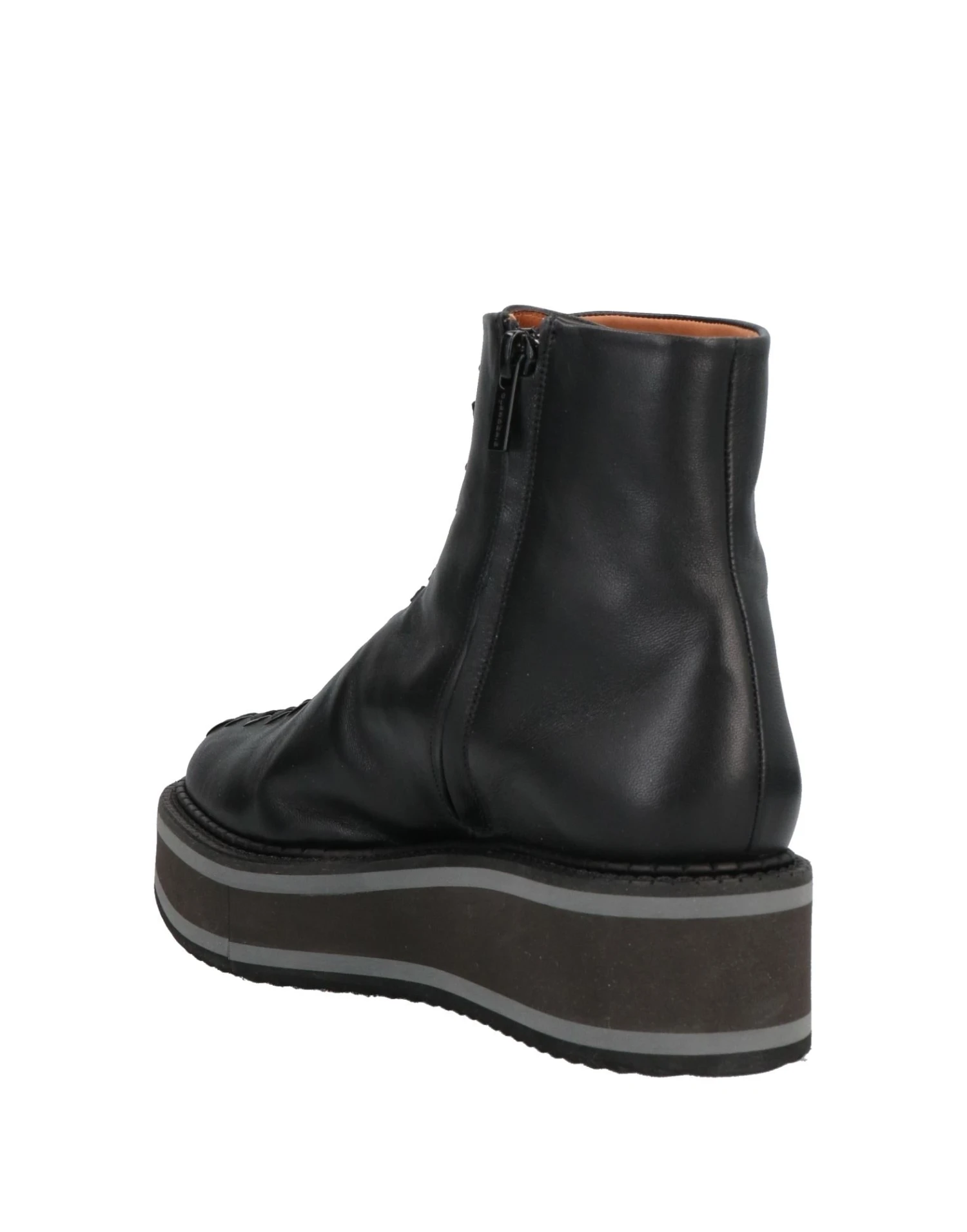 leather, no appliqués, solid color, leather backing, zipper closure, laces, wedge heel, round toeline, rubber cleated sole, contains non-textile parts of animal origin, lace-up boots model