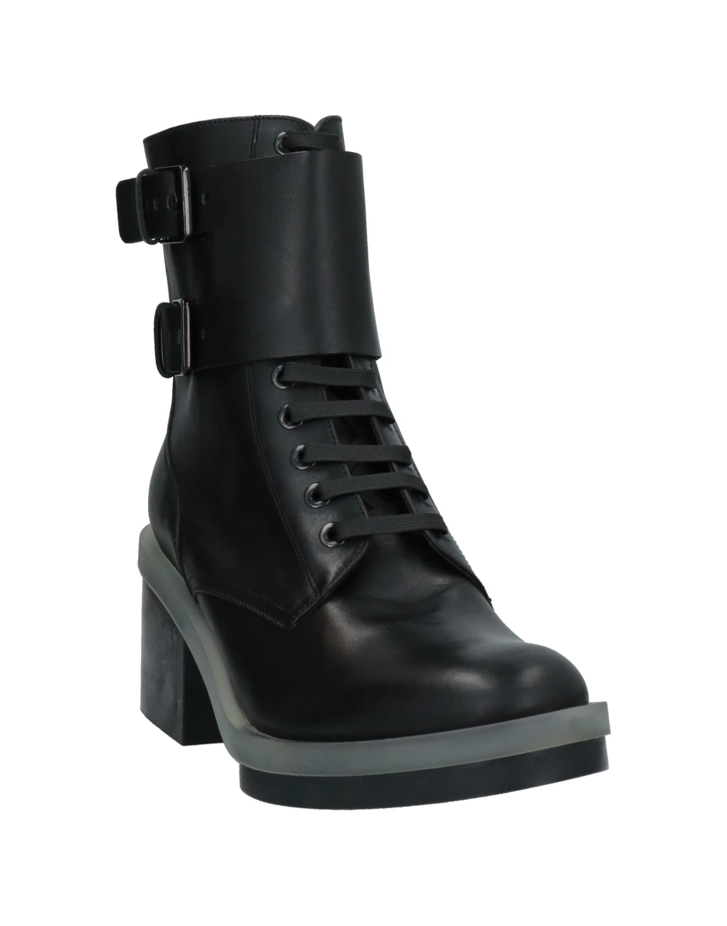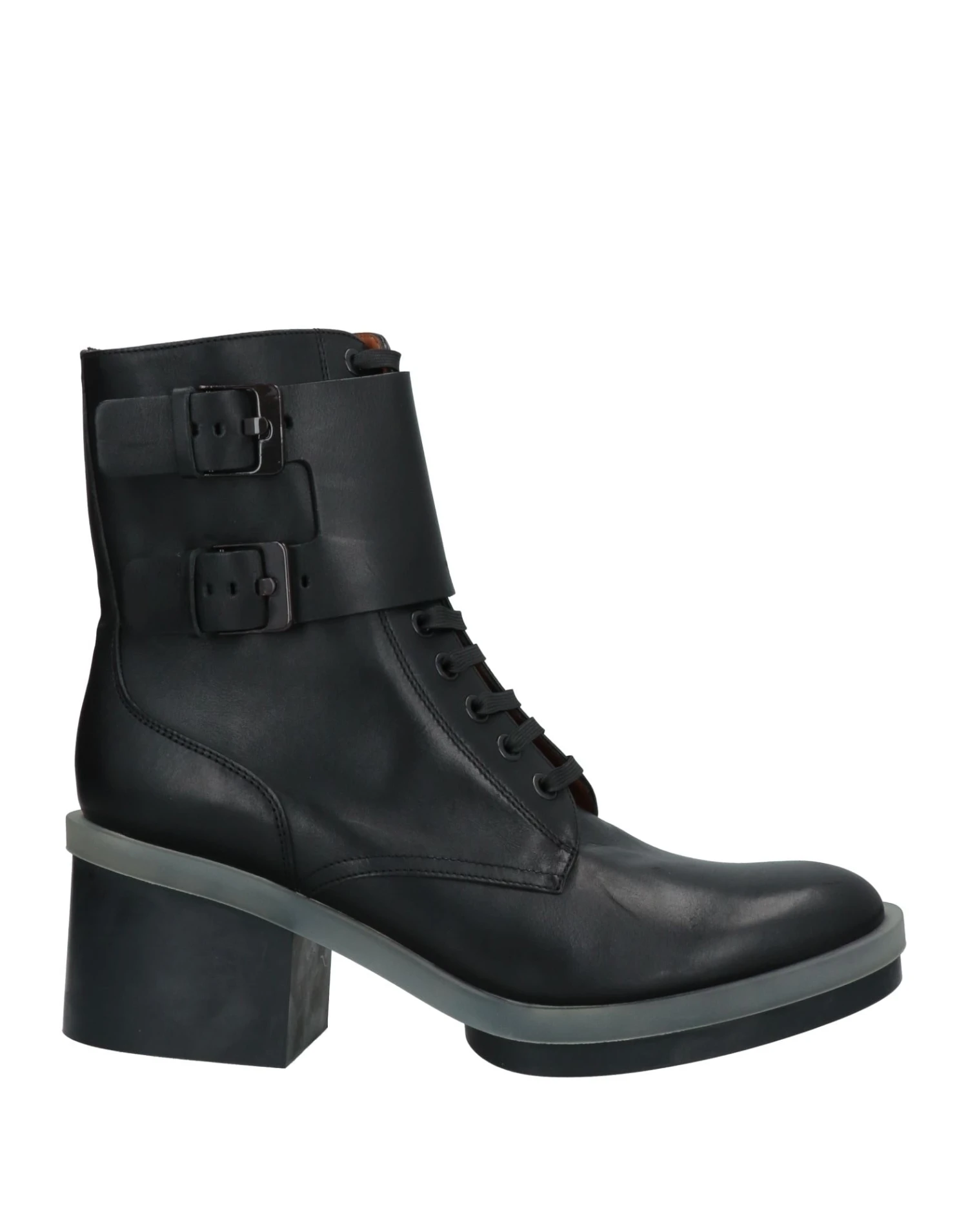 leather, solid color, leather backing, zipper closure, laces, round toeline, square heel, rubber heel, rubber sole, contains non-textile parts of animal origin, buckle, lace-up boots model