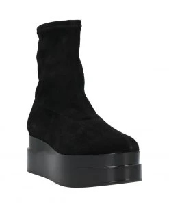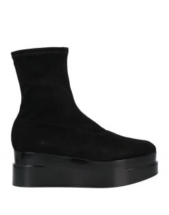 leather, suede effect, no appliqués, solid color, fabric inner, round toeline, wedge heel, rubber cleated sole, contains non-textile parts of animal origin, sock boots