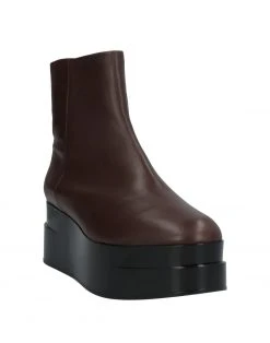 leather, no appliqués, solid color, zipper closure, round toeline, wedge heel, rubber cleated sole, leather backing, contains non-textile parts of animal origin, ankle boots