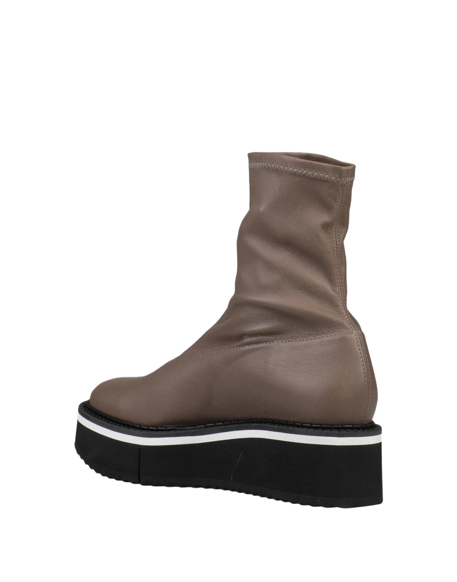 leather, stitching , solid color, round toeline, wedge heel, leather lining, rubber sole, contains non-textile parts of animal origin