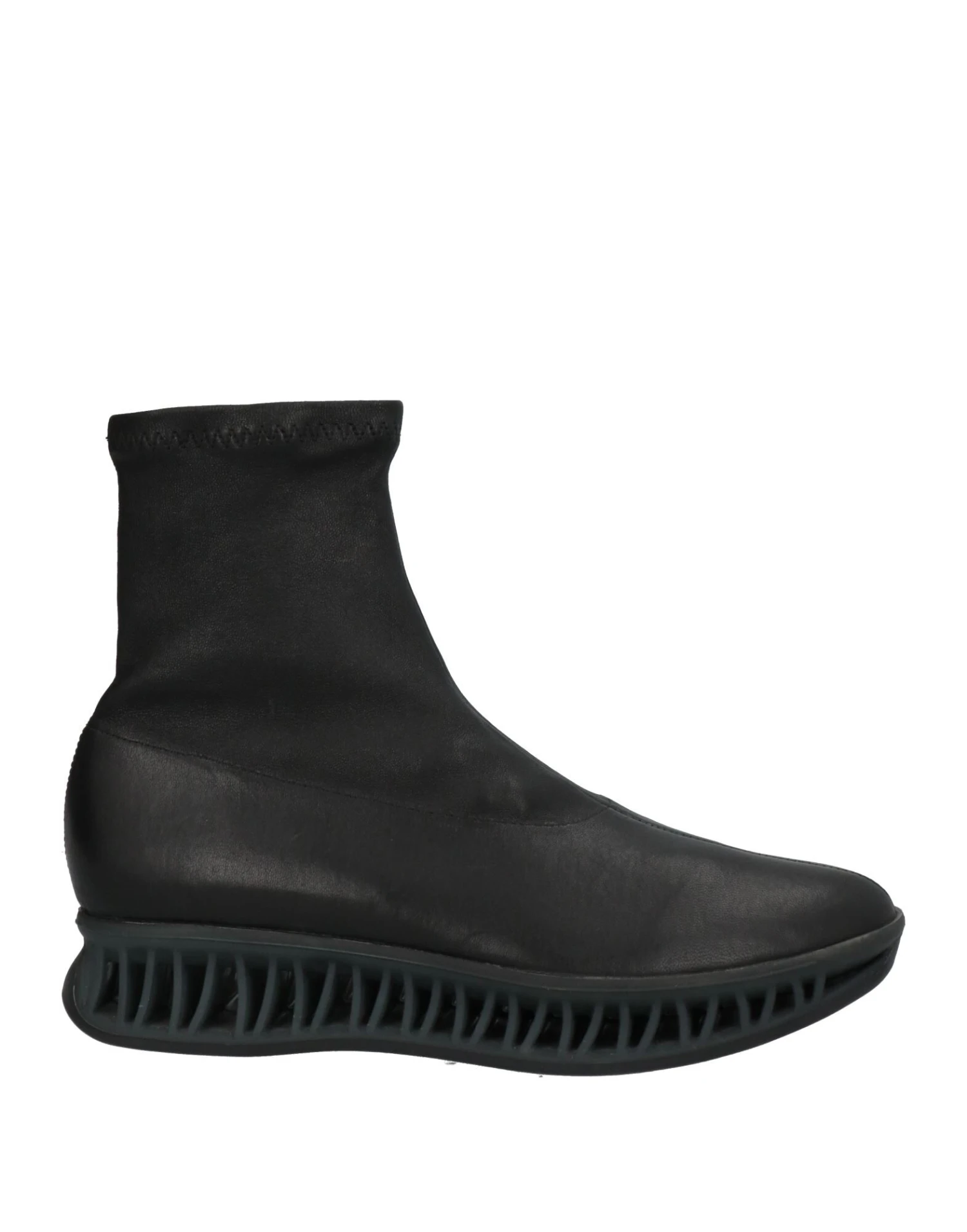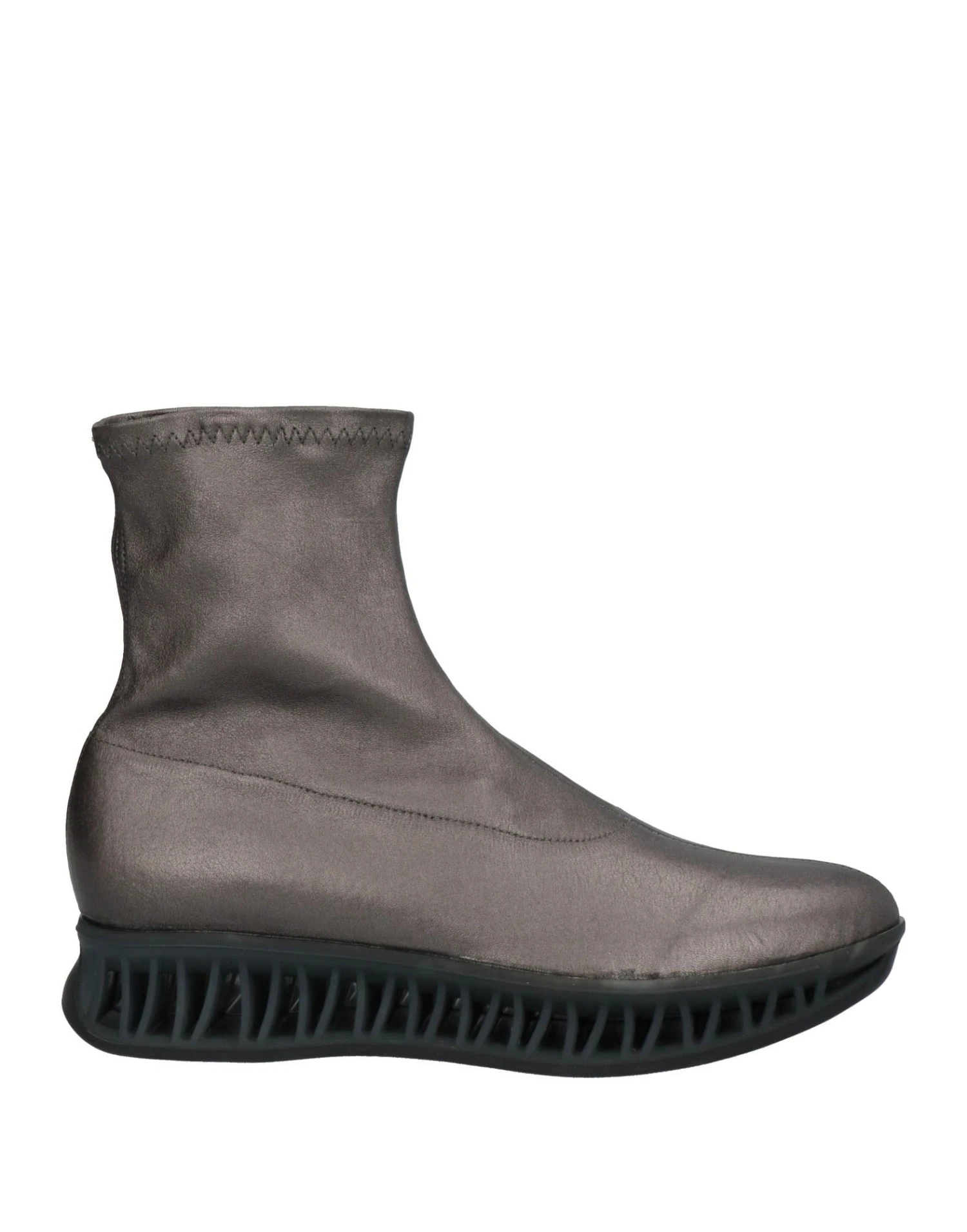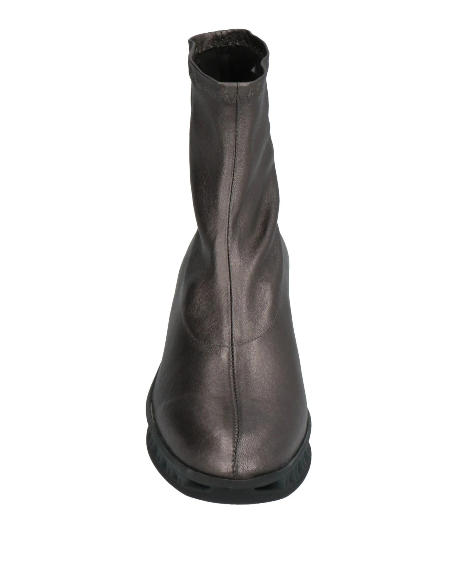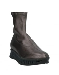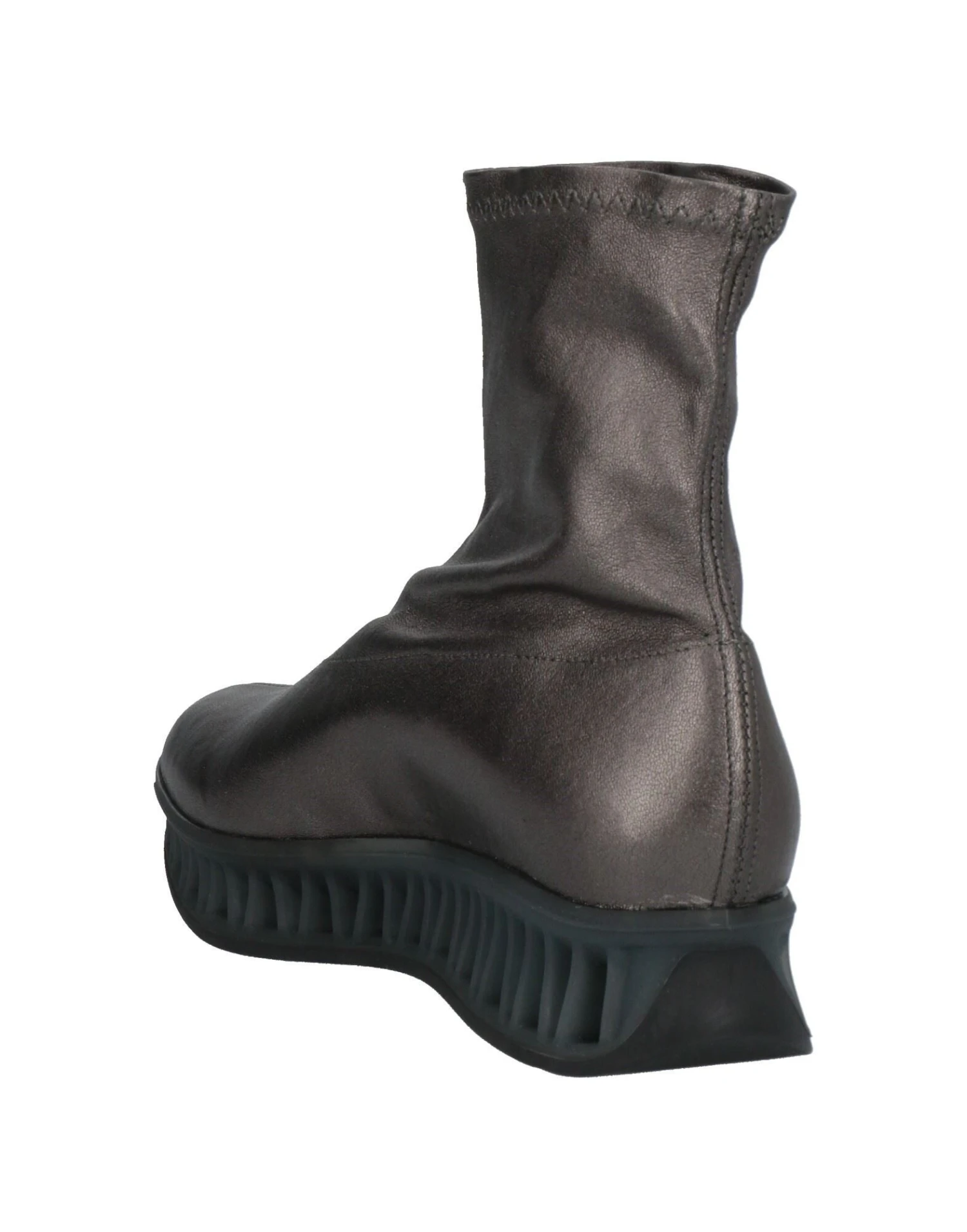laminated effect, no appliqués, solid color, leather backing, round toeline, wedge heel, rubber sole, contains non-textile parts of animal origin, ankle boots