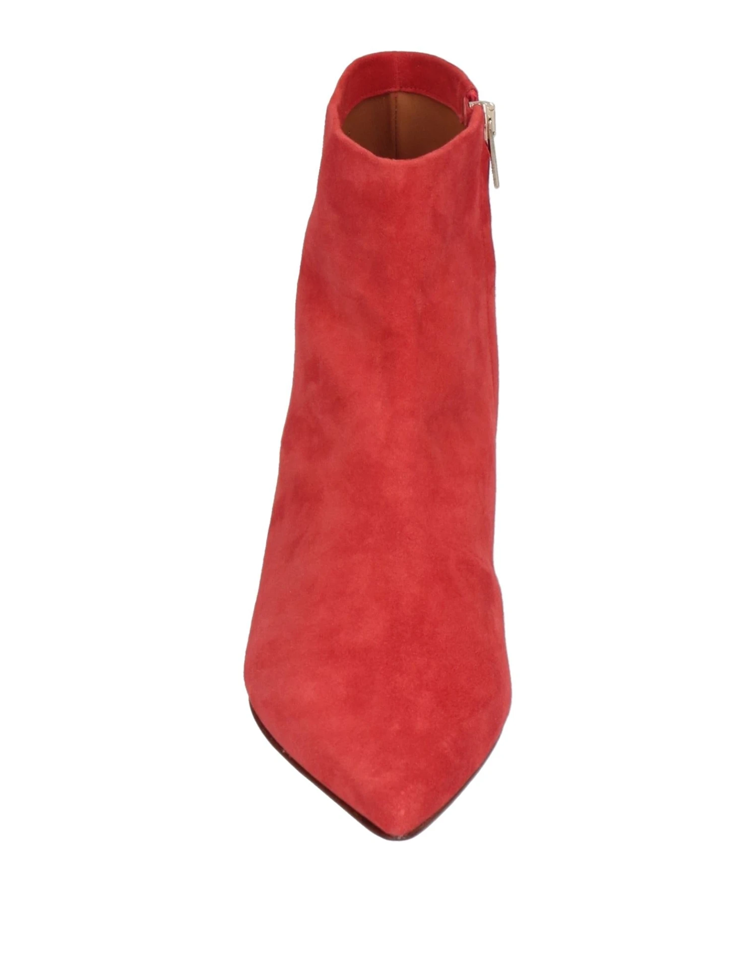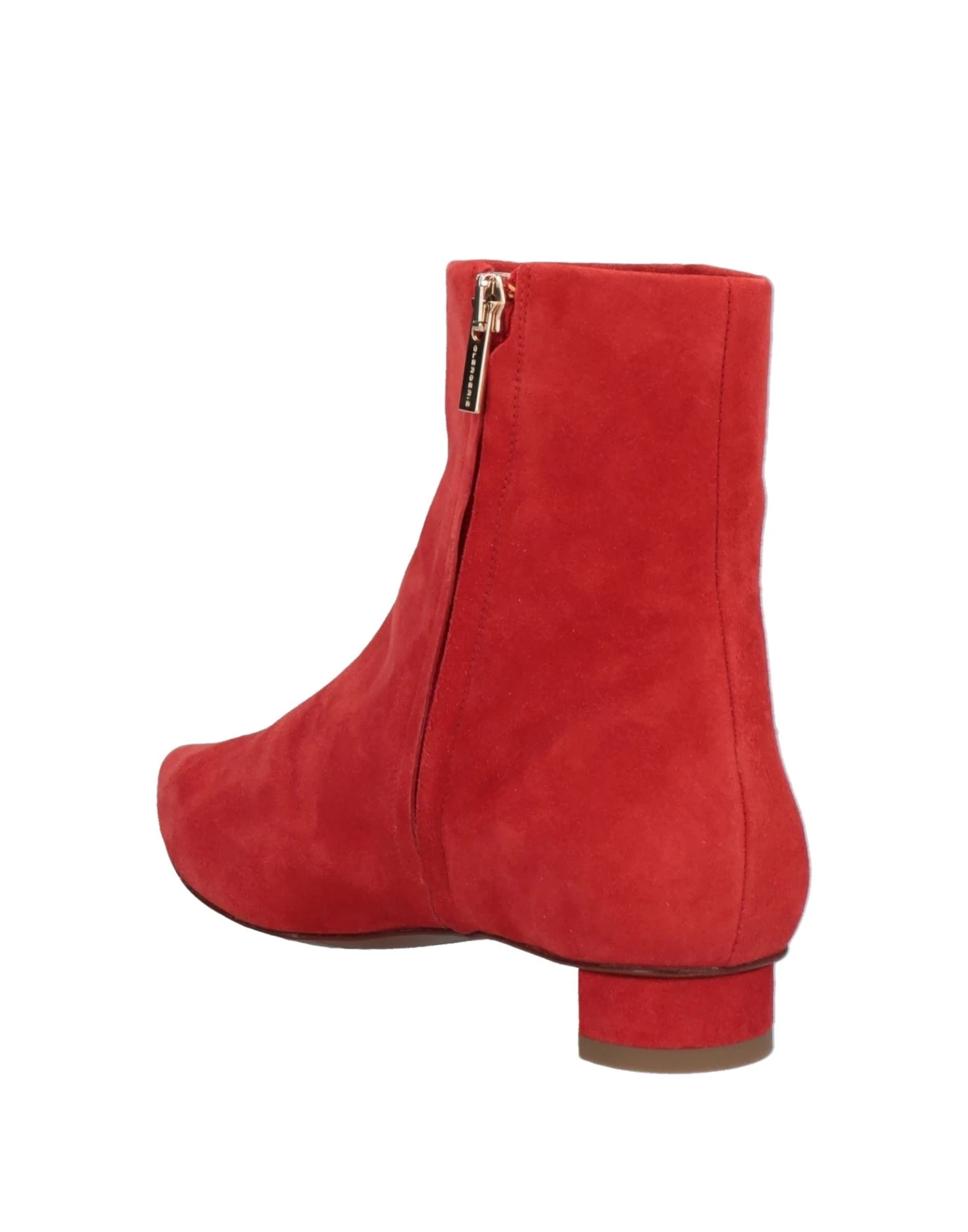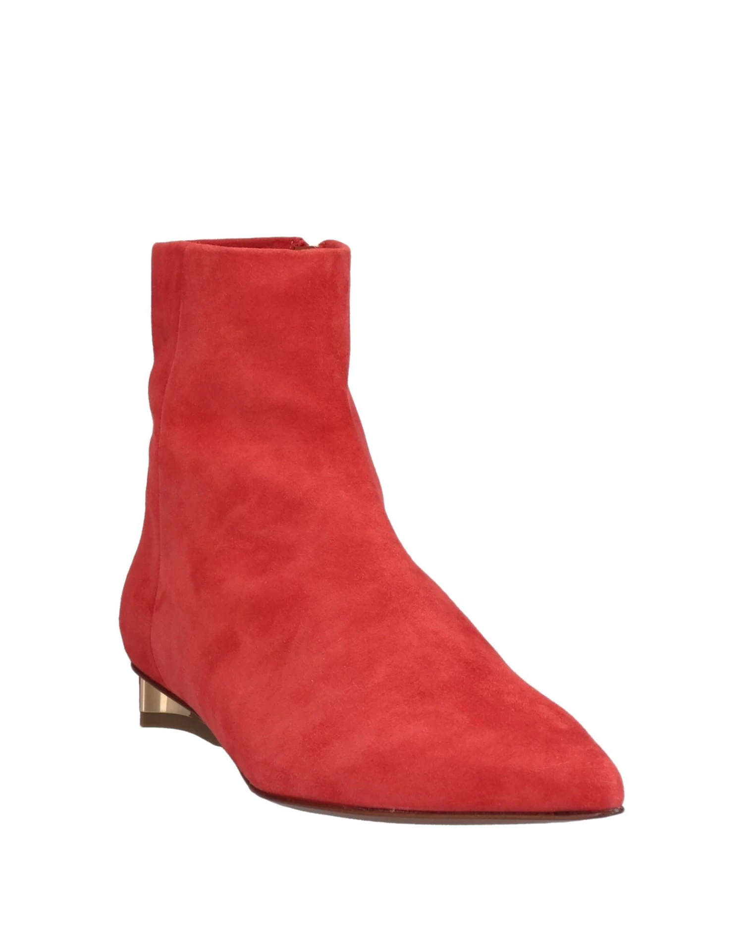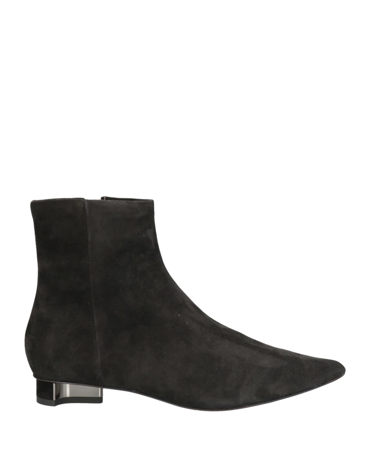 leather, suede effect, no appliqués, solid color, leather backing, zipper closure, narrow toeline, flat, leather sole, contains non-textile parts of animal origin, suede ankle boots