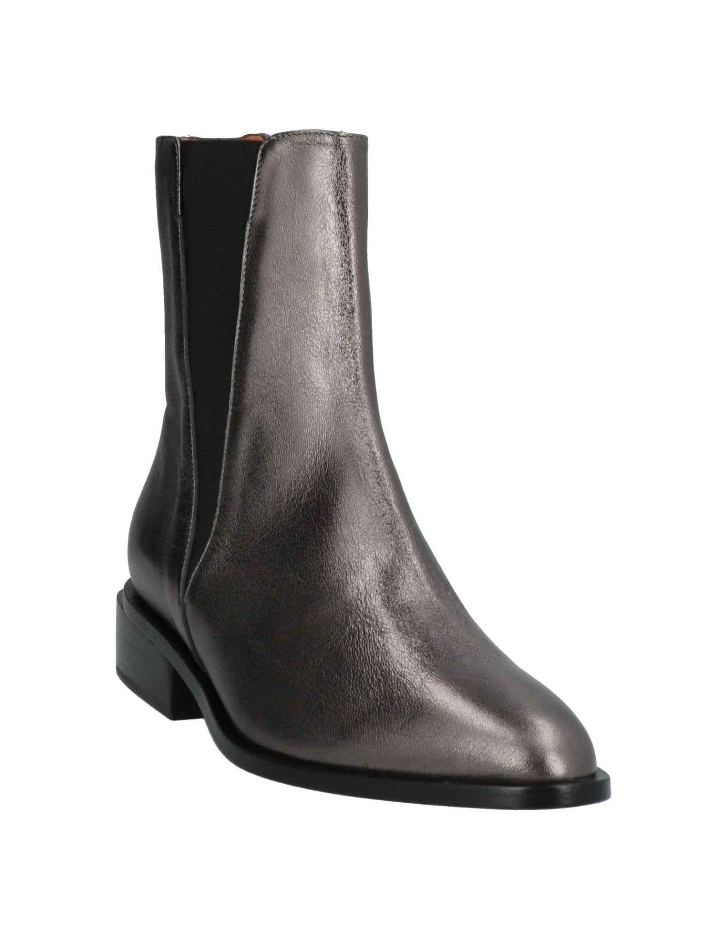 laminated effect, no appliqués, solid color, leather backing, elasticized gores, round toeline, flat, leather/rubber sole, contains non-textile parts of animal origin, chelsea boots