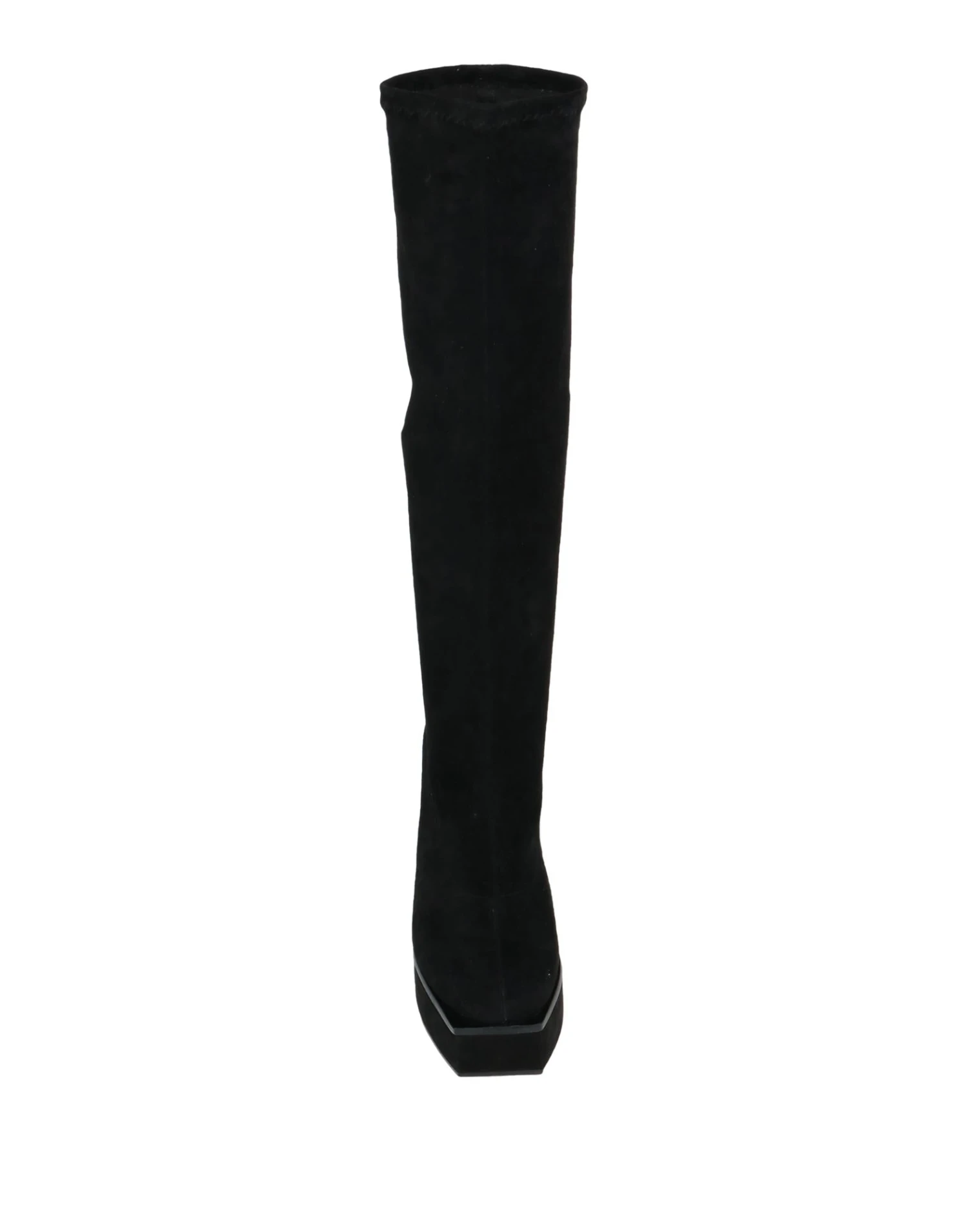 leather, suede effect, no appliqués, solid color, leather backing, square toeline, square heel, leather/rubber sole, contains non-textile parts of animal origin, chunky boots