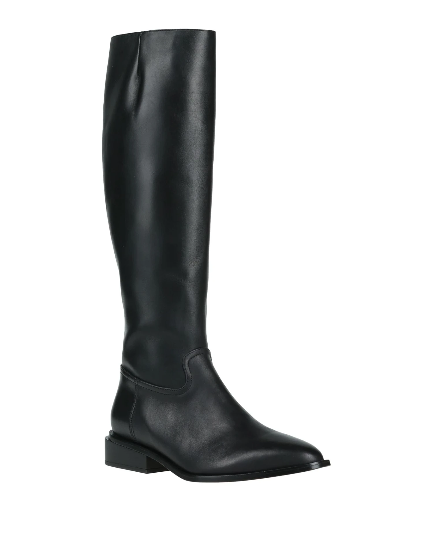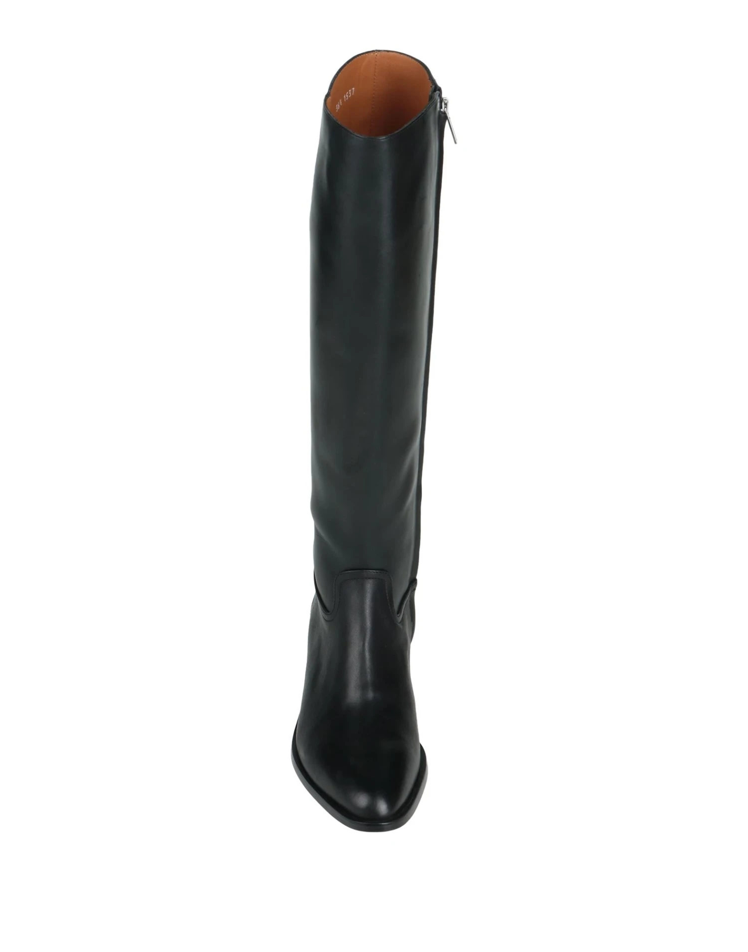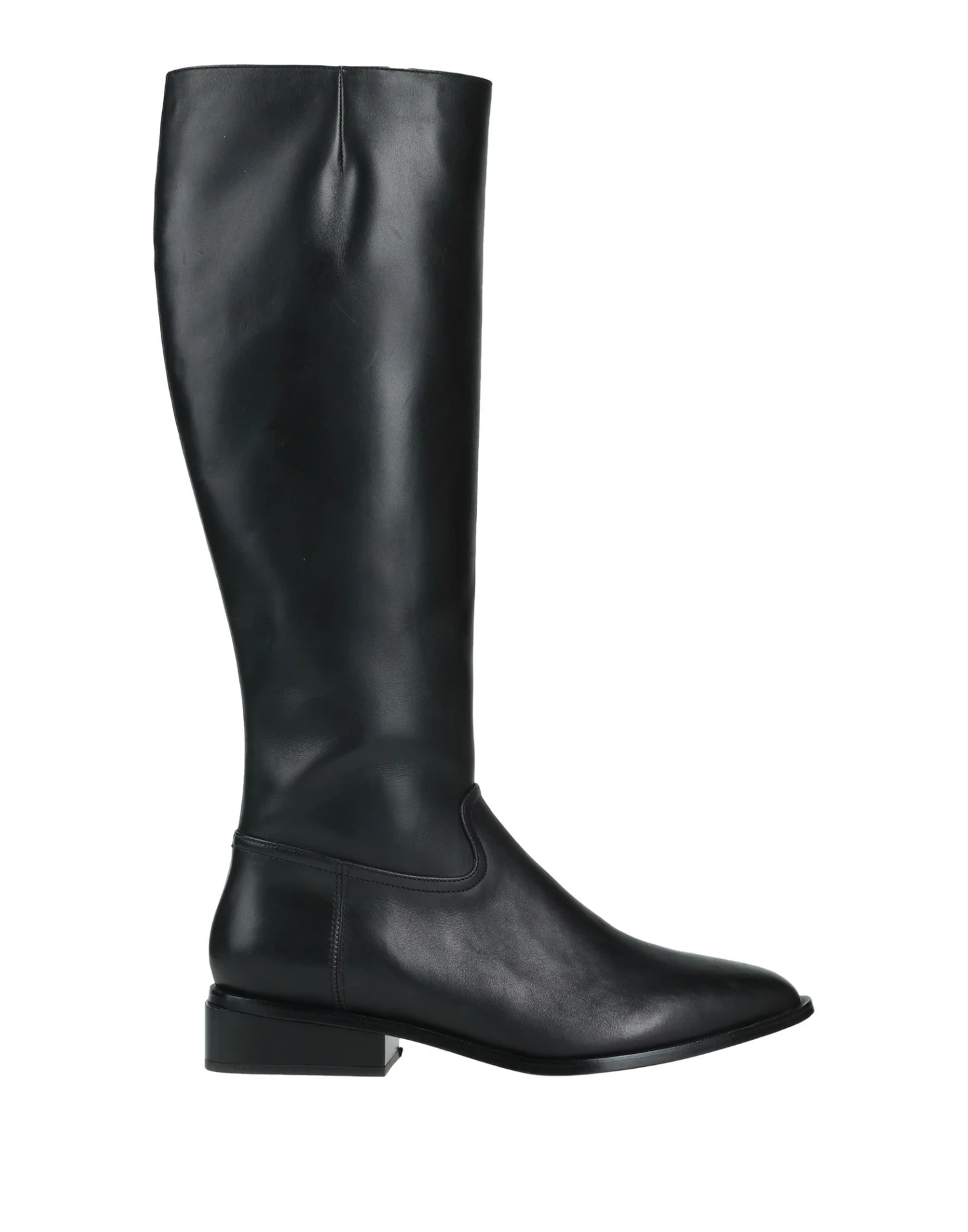 leather, no appliqués, solid color, leather backing, zipper closure, narrow toeline, square heel, leather/rubber sole, contains non-textile parts of animal origin, riding boots model