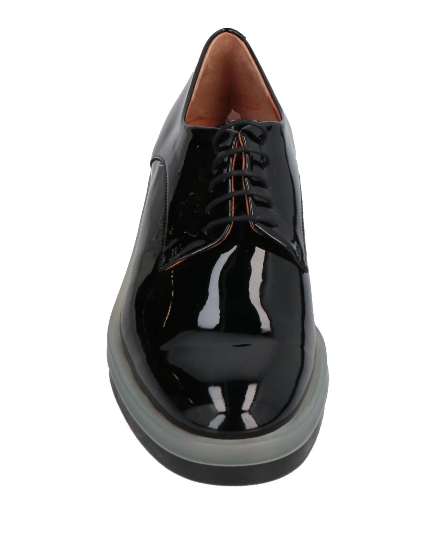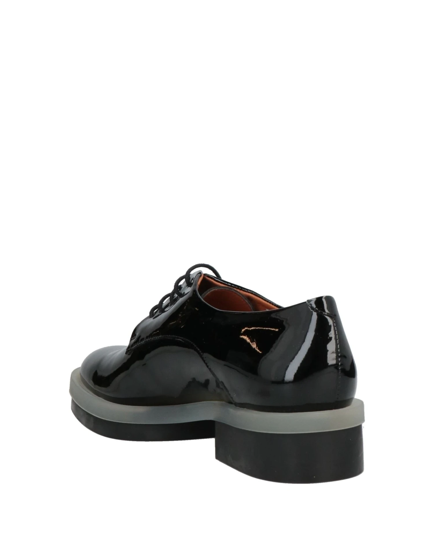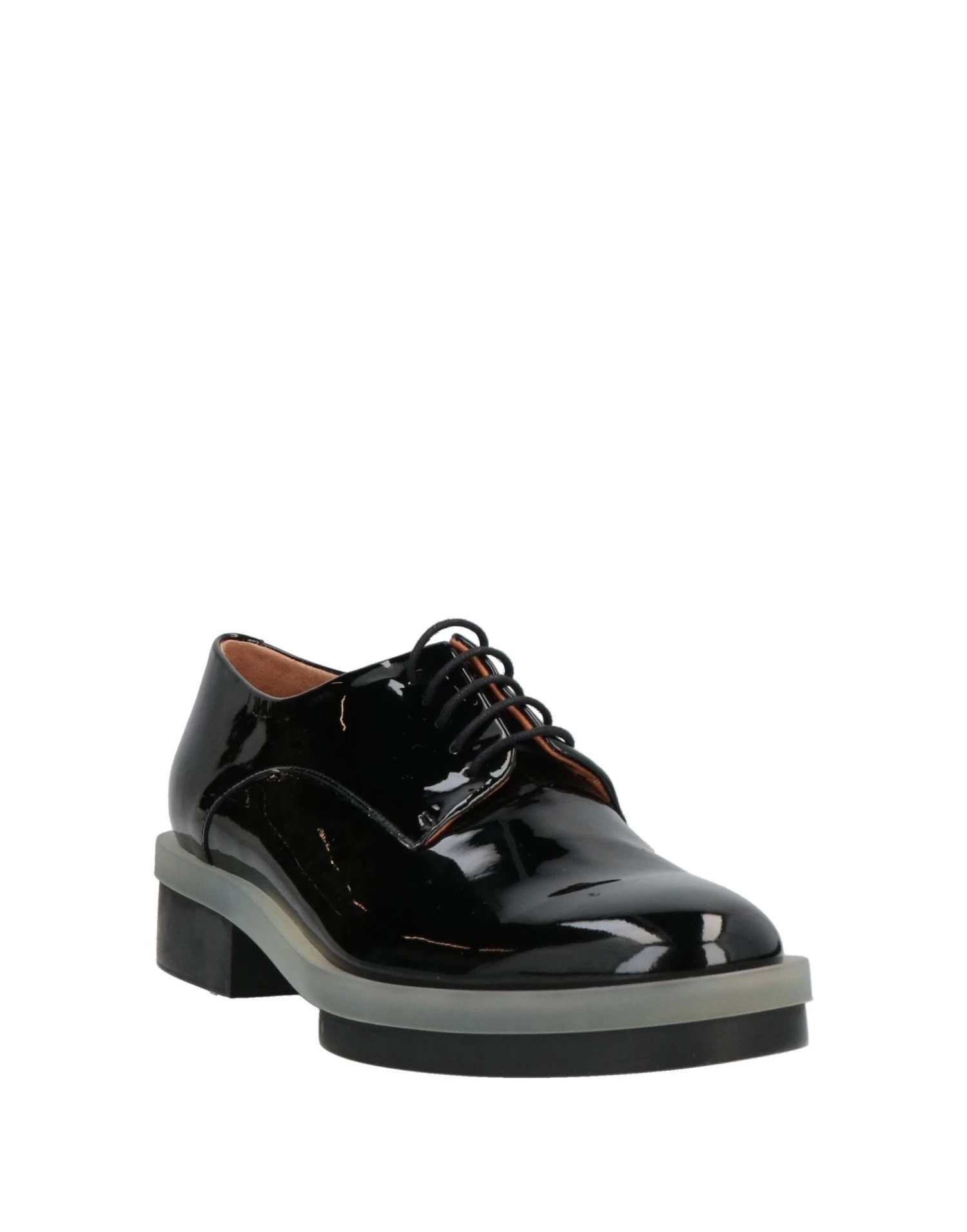leather, no appliqués, solid color, leather backing, round toeline, square heel, rubber sole, contains non-textile parts of animal origin, varnished effect, derbies