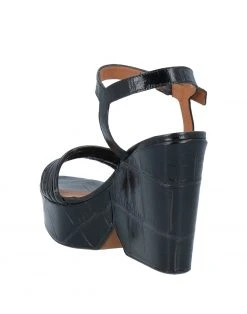 crocodile print, no appliqués, solid color, leather lining, buckle fastening, round toeline, wedge heel, rubber sole, contains non-textile parts of animal origin