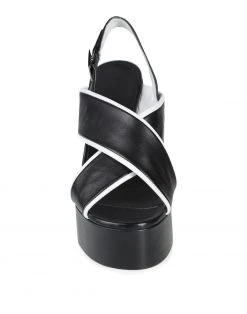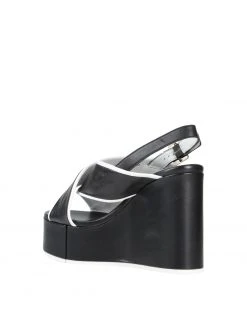 no appliqués, two-tone, leather lining, buckle fastening, round toeline, wedge heel, covered wedge, rubber sole, contains non-textile parts of animal origin
