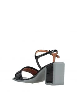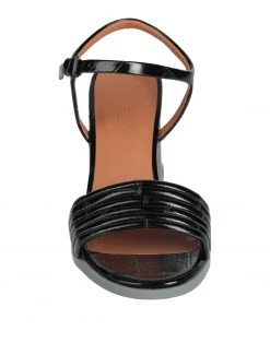 leather, crocodile print, no appliqués, solid color, leather lining, buckle fastening, wrapping straps closure, round toeline, geometric heel, rubber sole, contains non-textile parts of animal origin