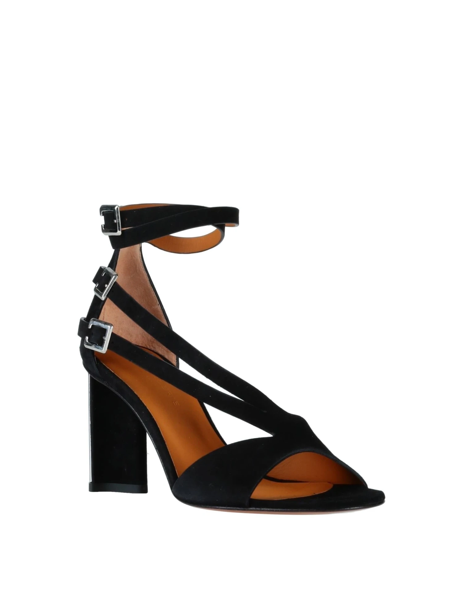 leather, suede effect, no appliqués, solid color, leather lining, buckle fastening, round toeline, geometric heel, leather sole, contains non-textile parts of animal origin