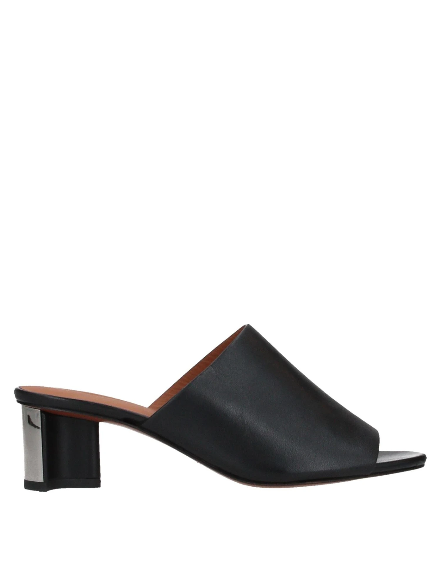 nappa leather, metal applications, solid color, open toe, sculpted heel, covered heel, leather lining, leather sole, contains non-textile parts of animal origin