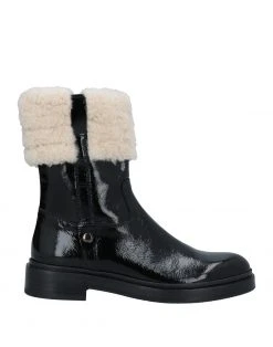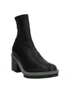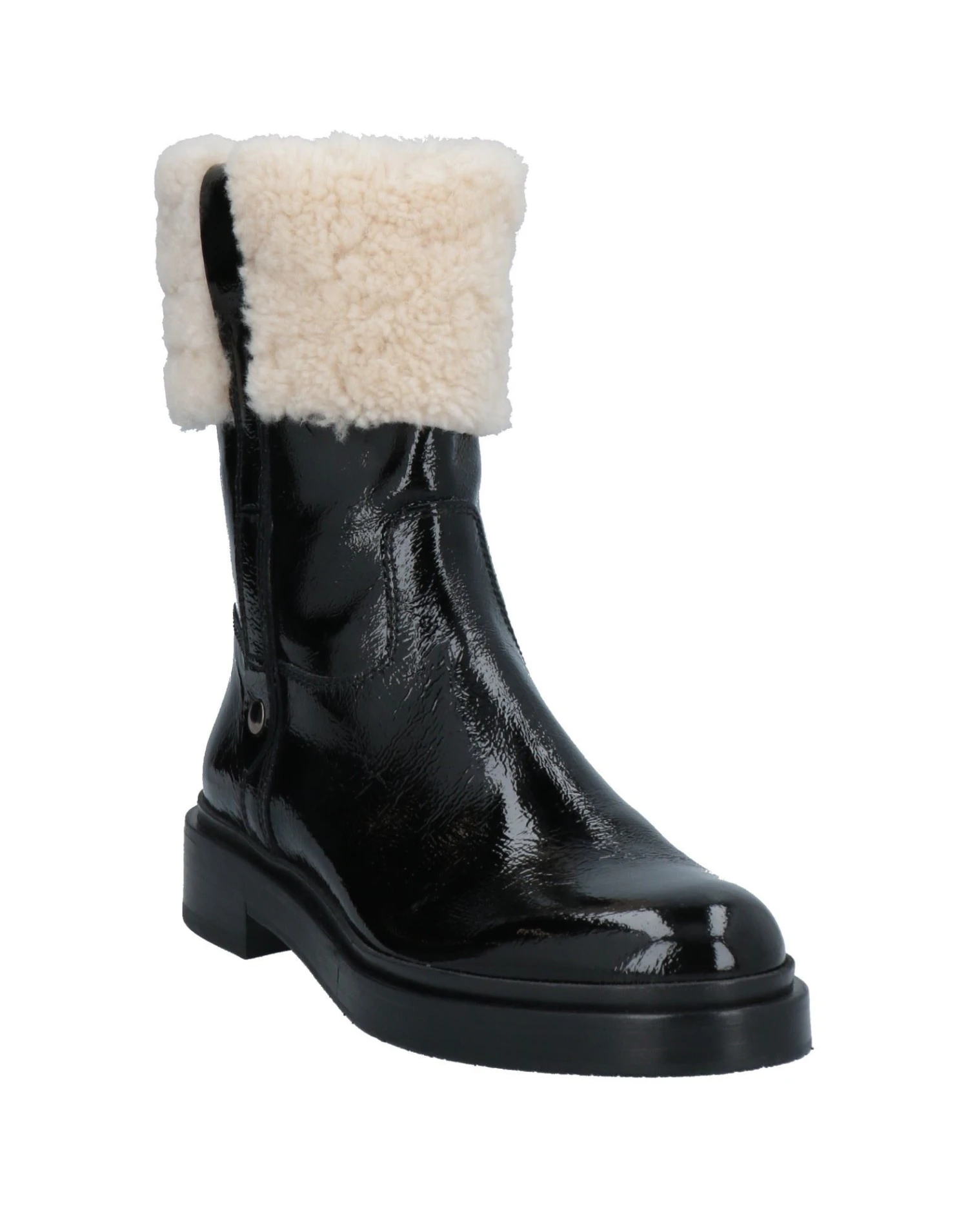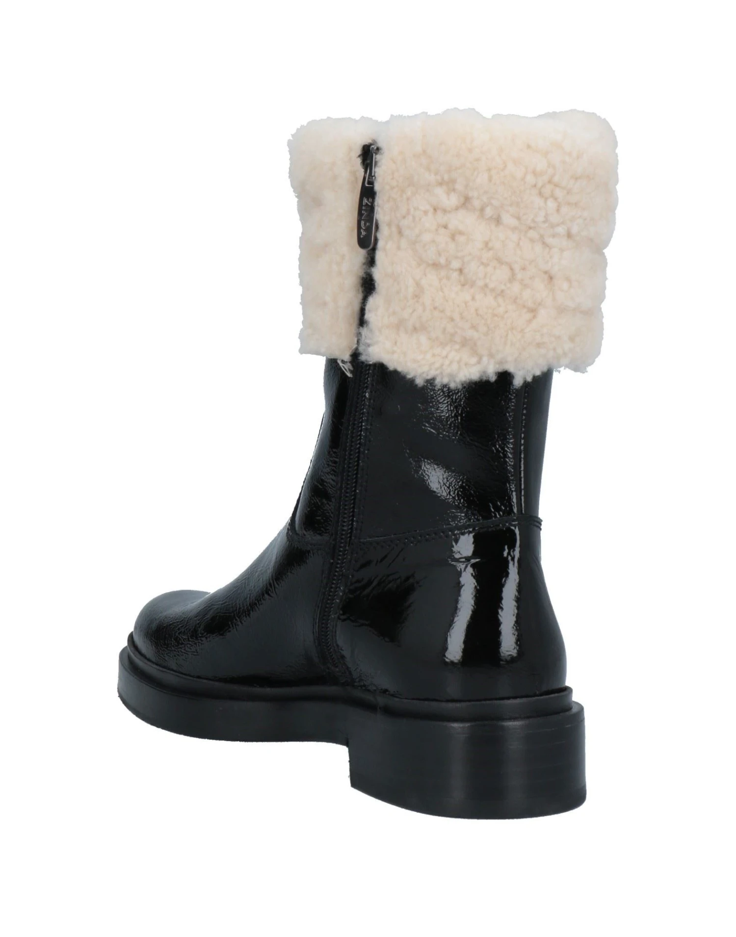 leather, varnished effect, no appliqués, two-tone, leather backing, zipper closure, round toeline, square heel, rubber sole, contains non-textile parts of animal origin