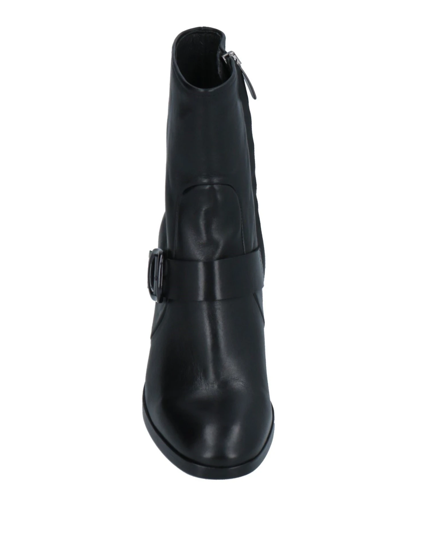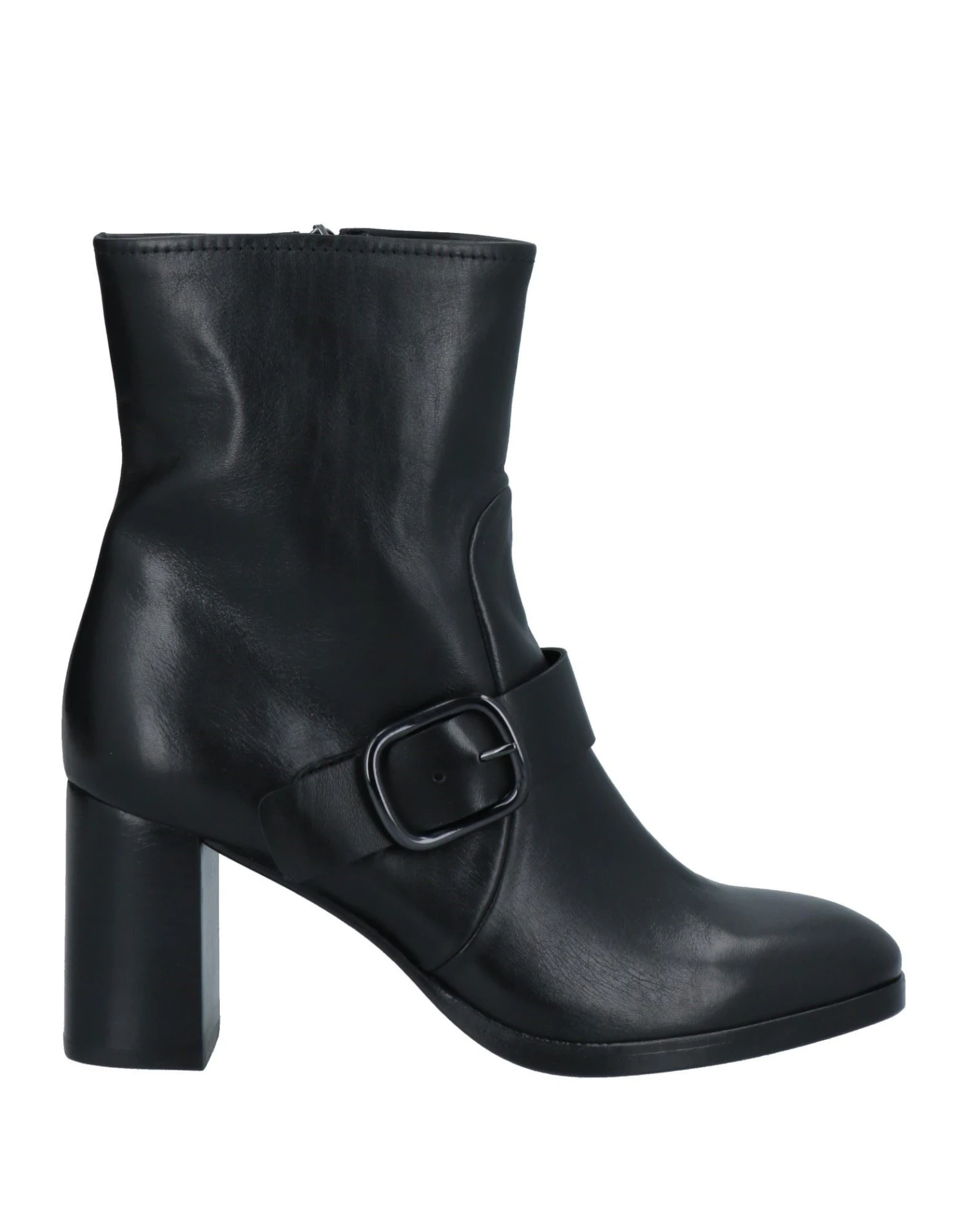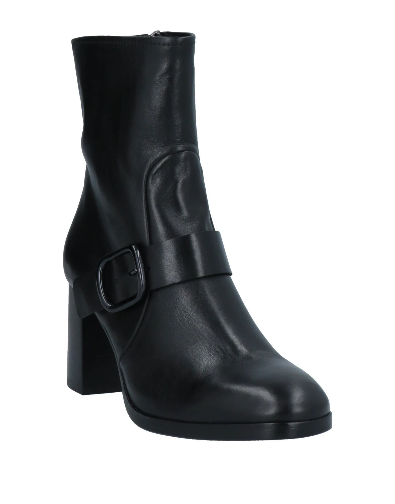 leather, buckle, solid color, leather backing, zipper closure, round toeline, square heel, leather/rubber sole, contains non-textile parts of animal origin