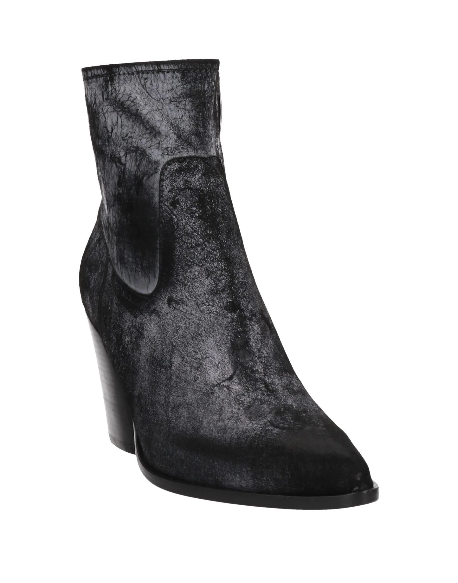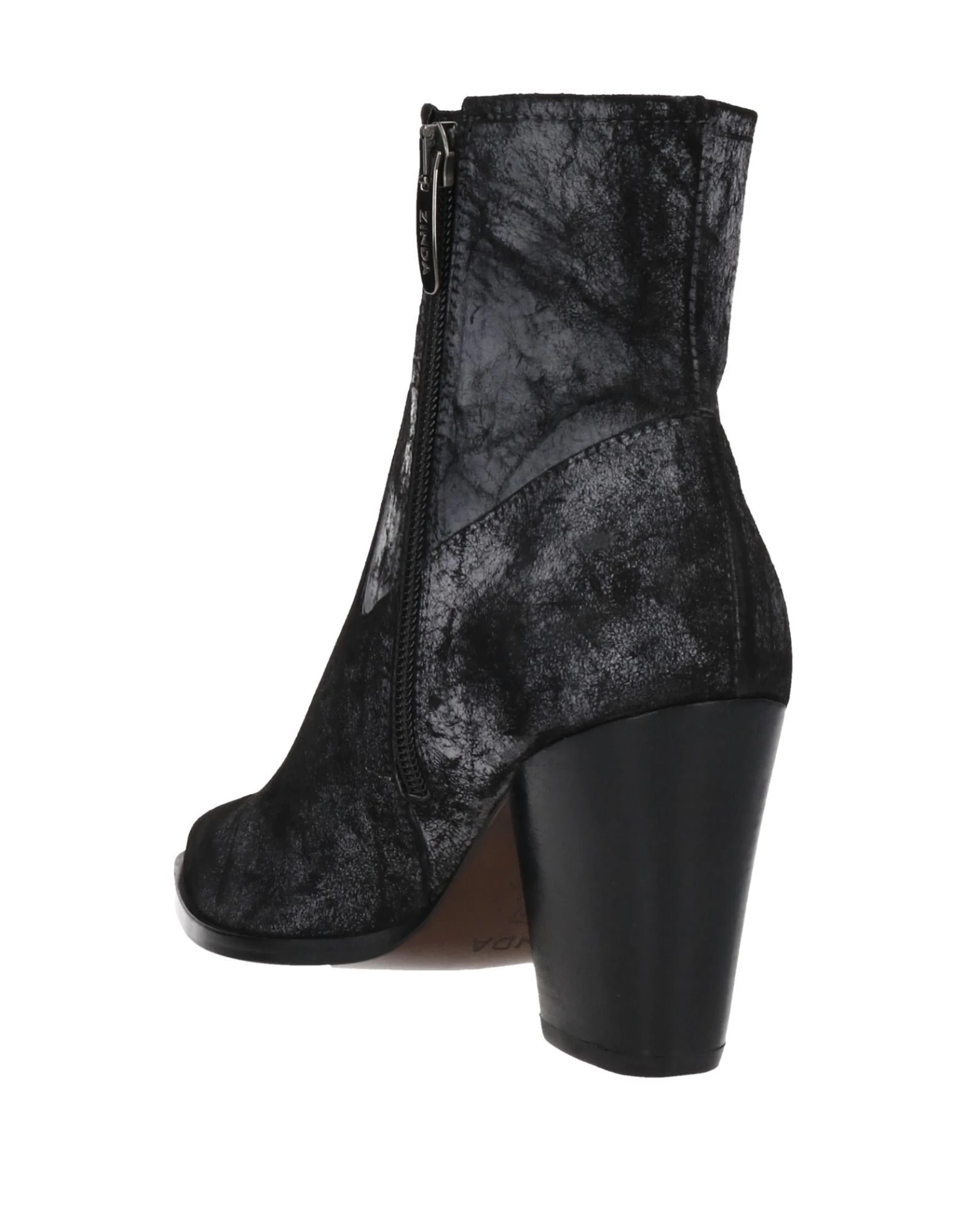 leather, split leather, suede effect, brand logo, solid color, zipper closure, narrow toeline, geometric heel, leather lining, rubber sole, contains non-textile parts of animal origin