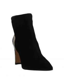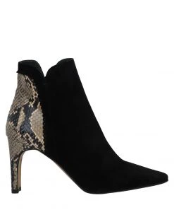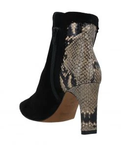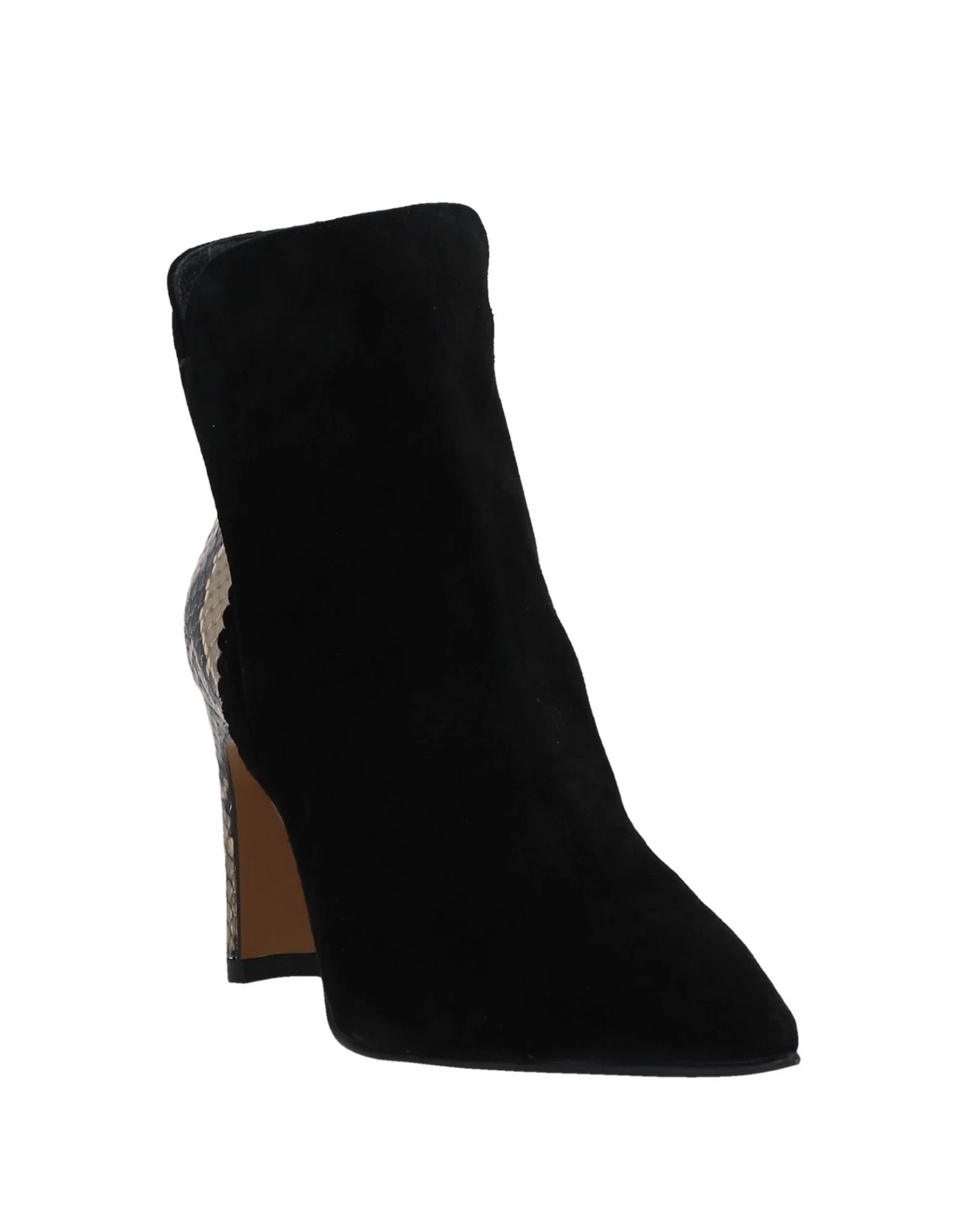 leather, snakeskin print, suede effect, no appliqués, multicolor pattern, zipper closure, narrow toeline, geometric heel, covered heel, leather lining, rubber sole, contains non-textile parts of animal origin