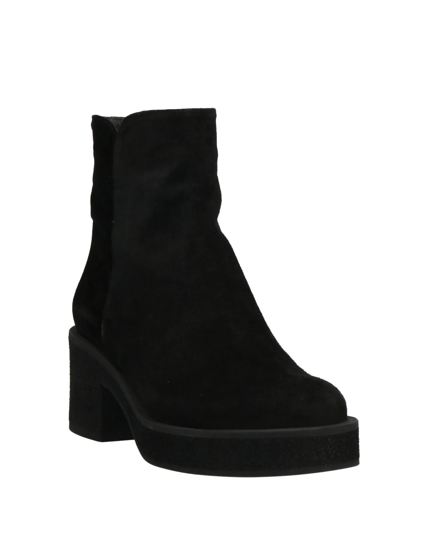 leather, suede effect, no appliqués, solid color, leather backing, zipper closure, round toeline, square heel, rubber sole, contains non-textile parts of animal origin, chunky boots