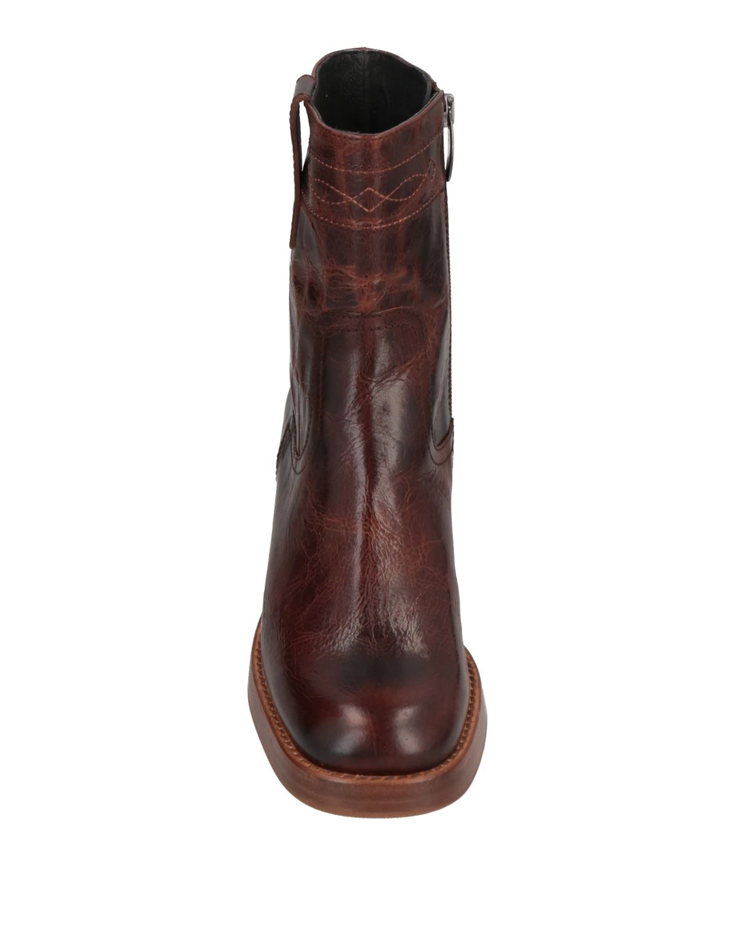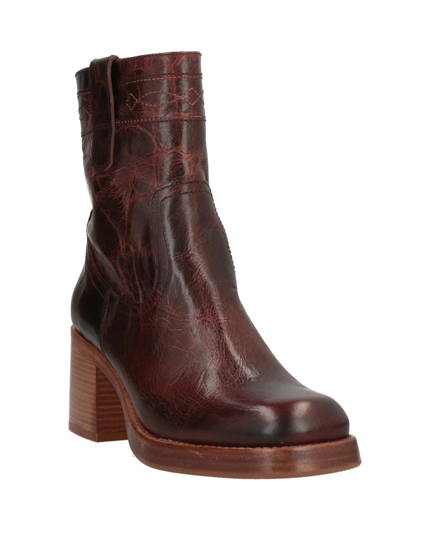 leather, embroidered detailing, solid color, leather backing, zipper closure, round toeline, square heel, rubber sole, contains non-textile parts of animal origin
