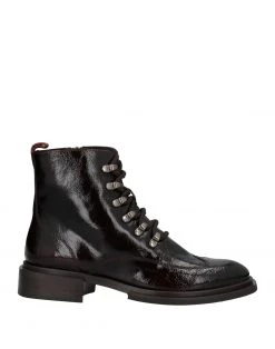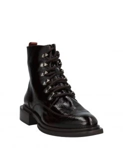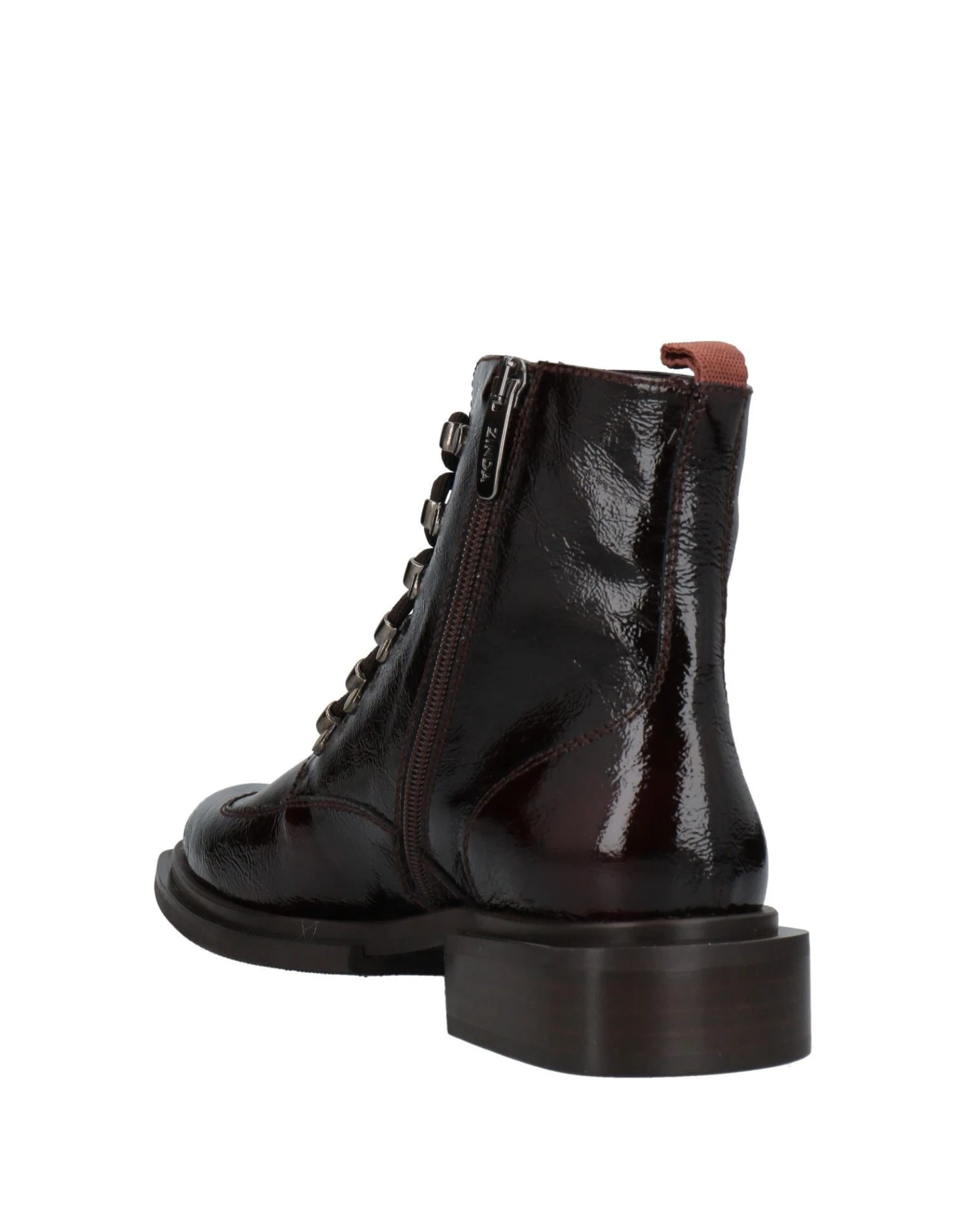 varnished effect, no appliqués, solid color, leather backing, laces, narrow toeline, square heel, rubber sole, contains non-textile parts of animal origin